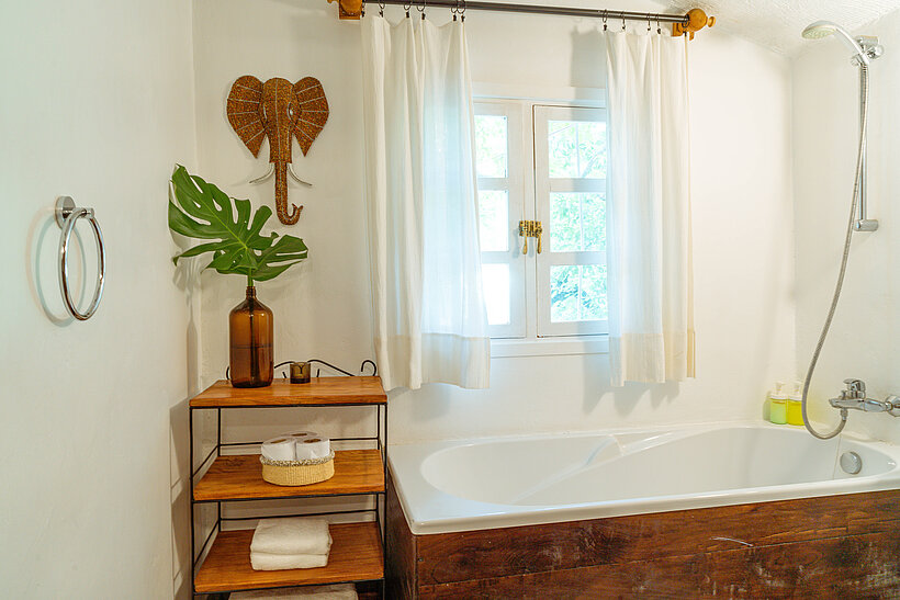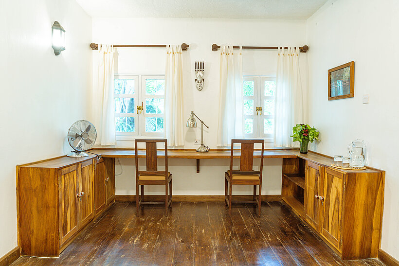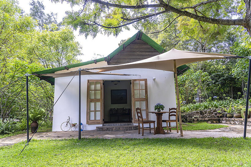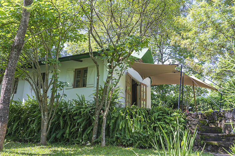 Built in the 1950s as a farm manager’s home, the Farm Cottage is now a spacious private villa just a minute’s walk from the Main House. Nestled behind the Garden Rooms, it offers stunning views of Mount Meru and Kilimanjaro from its veranda and balcony.