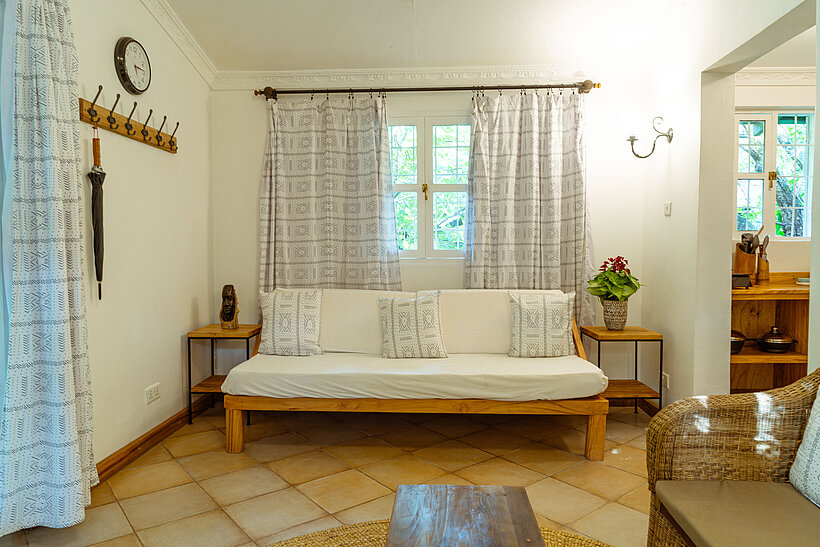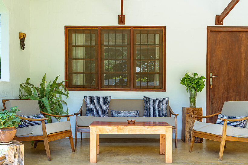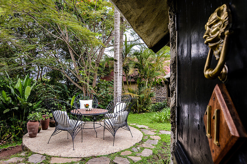 Step outside to the secluded sitting area, nestled among swaying palm trees and lush greenery. Whether you're enjoying a quiet morning coffee, unwinding with a book, or sharing a sunset drink, this peaceful outdoor space provides an idyllic setting to soak in the sounds of nature and the gentle mountain breeze. With its blend of privacy and comfort, the Pool Cottage is an ideal hideaway for families, couples, or friends looking for a serene escape in the heart of Ngare Sero’s breathtaking landscape.