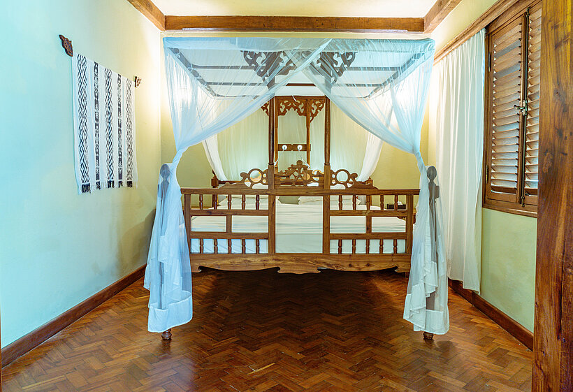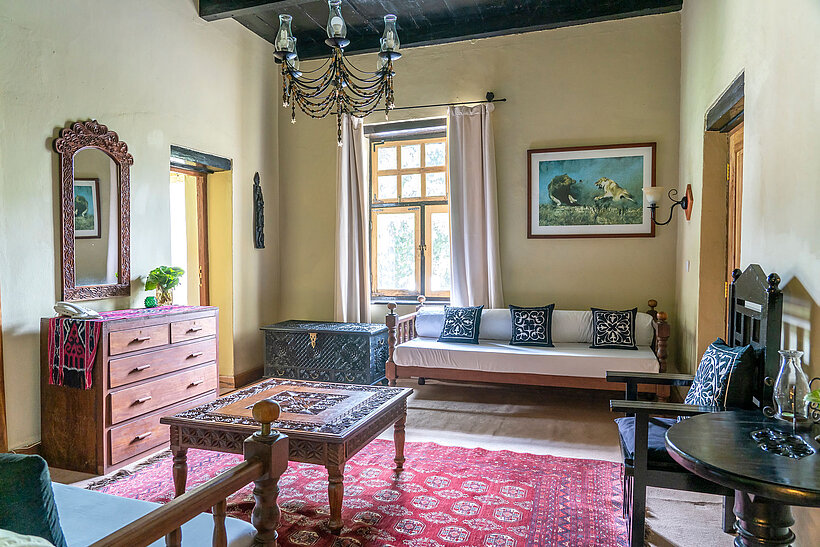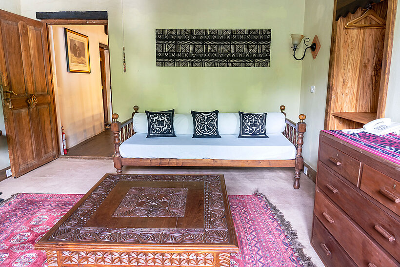 Our 10 Garden rooms are nested in the tranquil gardens with the beautiful views of bougainvillea and jacaranda from private verandahs. 8 rooms offer king-size Zanzibar beds and 2 others are furnished with twin beds. Interiors are individually decorated with ethnic fabrics and handmade furniture like study tables and the ottoman sofas that on request can be used as a third single bed. Each room has an en-suite toilet, a bath tub and a dressing room.
